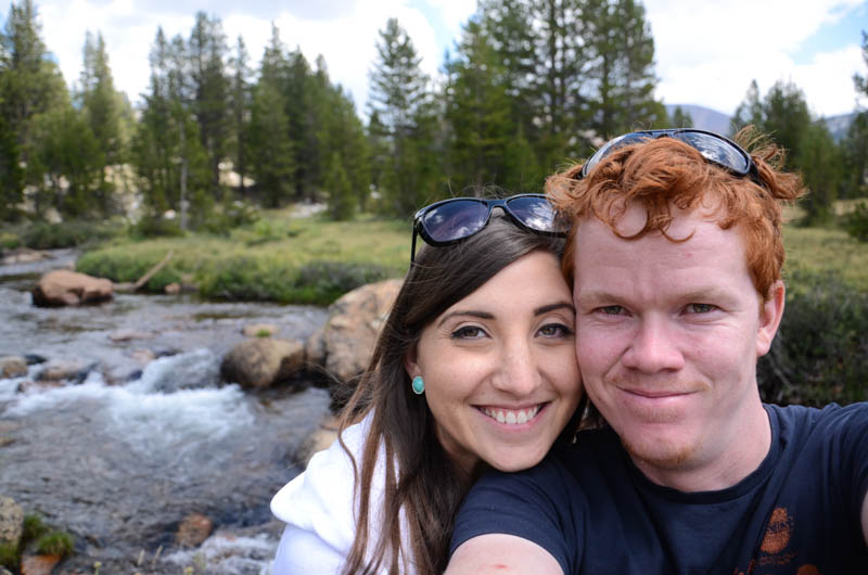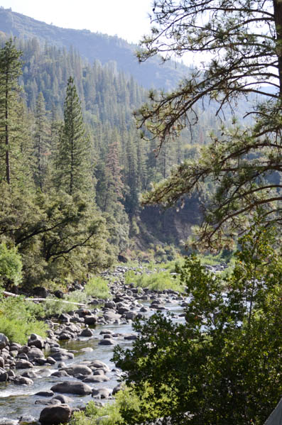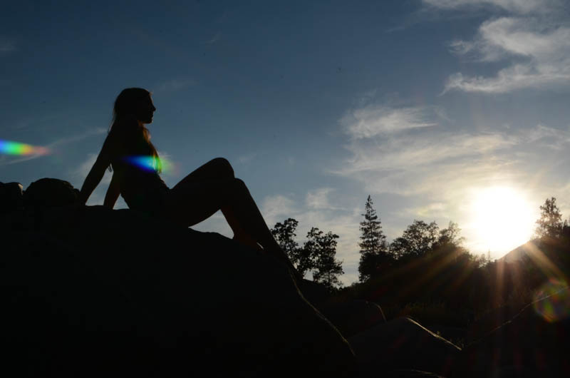 Finally making our way into Yosemite National Park we paid our $20 entrance fee and were amazed at the sights, giant trees, clear running creeks and greenery everywhere. We stopped at the visitors centre for a look and enjoyed the scenery whilst driving. I was eager to get to the hotel, feeling tired today so we made our way down, down, down it was quite a long way. (later on realising what a mistake it was to rush this part of the park) We arrived at our Yosemite View hotel and were very disappointed, it was run down, everything old and dirty, our room door was still open from being cleaned and upon getting inside we had no towels or toilet roll! The air con was loud and for a room worth $400 a night it was very tired, old and kinda dirty. This was very disappointing after being spoiled in juniper springs the night before! The only good part was the view of the river outside that we could see from our balcony, a fast running river, loud with many little waterfalls there were also squirrels, lizards and many ducks. We decided to go for a walk to the river for a swim, but could not find a safe way down. The hotel did offer many pools and hot tubs, 3 outside and 1 inside. We settled on the inside as it was quite sunny and hot and we didn’t want Greg to get sunburned, this worked out great as it was just us and a mother with her baby and 4 or 5 year old, it was so nice to relax and unwind, trying to let the disappointment of this expensive yet tired hotel go. Greg and I had a nice chat about what we would do to improve it and make it great again as it is such a great location! Feeling a bit better we headed a mile down the road to a little store for some milk (we had a fridge again, left over cereal for breakfast yay!) everything was expensive here as it was the only store for 30 miles. We headed back to drop off the milk and make a reservation at the hotel restaurant for later as we wanted to photograph the sunset. Unfortunately they didn’t take reservations (first come first served) we didn’t see this as much of a problem for now so headed down the road to find a great sport for photo’s, it was almost 7pm and it would take too long to find a nice spot higher up. We found a spot that people go fishing not far away, climbing down the rocks carefully, this is where we set up for the sunset, unfortunately the sun was not in a good spot….. Letting this roll off Greg aimed to capture the colours change of the sky and how it hit the trees and the creek. This was a beautiful place to sit and relax, listening to the water and enjoying nature in this foreign place.