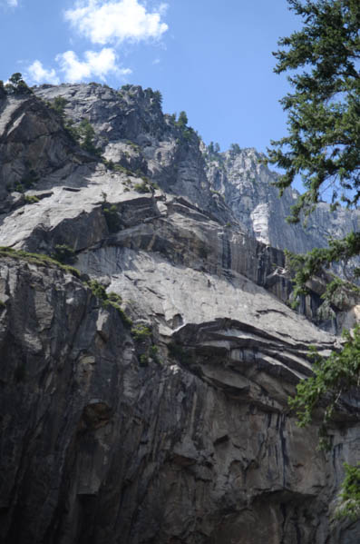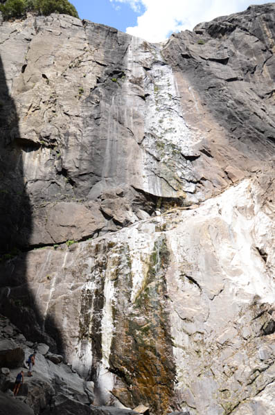 We pushed on visiting the lower waterfall, the trees are huge here, so tall! Unfortunately the waterfall was pretty much dried up (end of summer of course) but we still enjoyed the view. We stopped for a rest (our feet and bodies are just tired all the time at this point) and enjoyed watching at least 6 squirrels run around everywhere, some of them very curious and not scared of people at all. We then decided to climb all the way up to the base of the waterfall, finding a slow trickle of a water down the cliff face and pool of water at the bottom. Climbing a bit higher we found ourselves in an almost cave sadly filled with graffiti, it was fun to make noise and listen to out echo’s, this was a long climb and got a bit hairy on the way down.