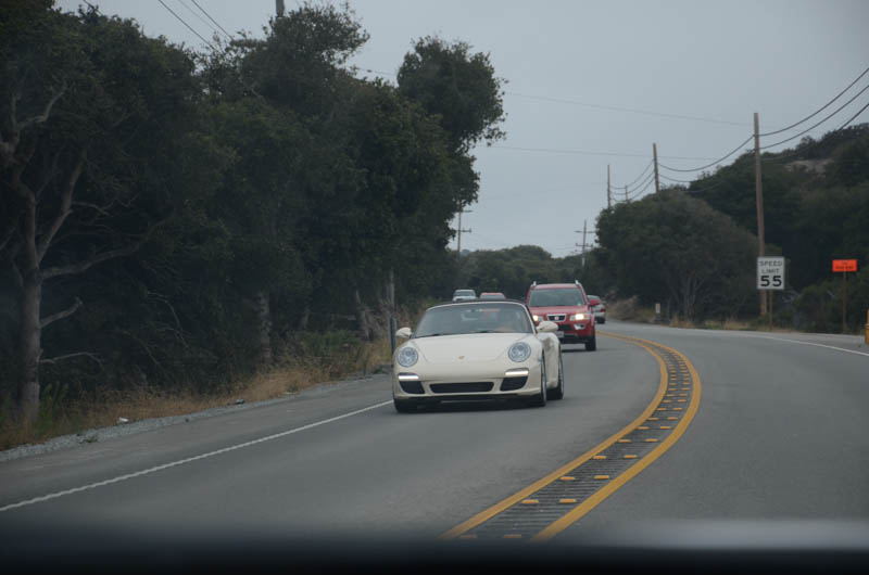 Today was the short drive from Santa Cruz to Big Sur. We made our way to Monterey for a look around this morning but were disappointed to find two big car shown on (one that we knew about $300 for a ticket!) and the other at the raceway, which we did not know about and Greg was very disappointed not to be allowed in for a look. There were so many nice cars out because of these shows (as you’ll see in the photo’s). We drove through Cannery Row but everything was paid parking and we were only stopping for a little while. Finally finding somewhere free to stop by the water we went for a walk to check out the view, there were kids in bikini’s swimming, they must have been crazy as it was freezing again this morning and foggy.. surprise surprise!