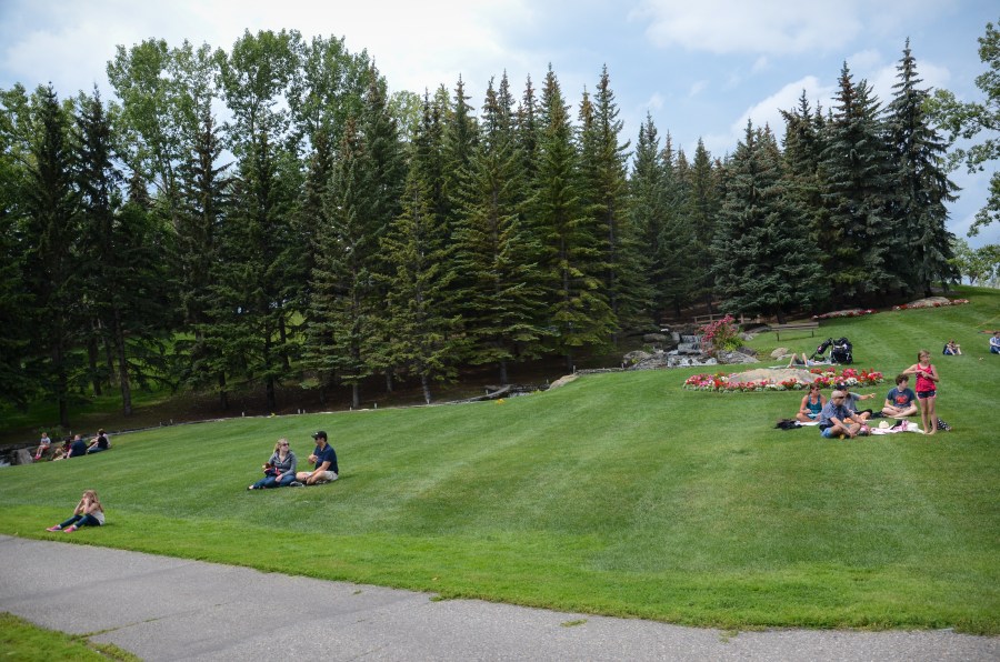 Our hosts picked us up from the airport and we enjoyed getting to know Jess & Jacqueline on the drive to our first Calgary home. I enjoyed snuggling their tiny rescue dog Walter, oh so cute! The scenery here is lovely all the pine trees looking ready for Christmas and there is a different feel to the air you breathe here as Calgary is about 1,045 m above sea level. Where we are staying is close to the edge of the city, its less busy and there is so much greenery around because of all the rain lately. This is unusual for Calgary in the summer. Our hosts kindly took us walking to a place called Fish Creek Provincial Park on Friday afternoon and we enjoyed watching the sun go down (not till 10pm!) what a beautiful view of the river and of downtown Calgary.